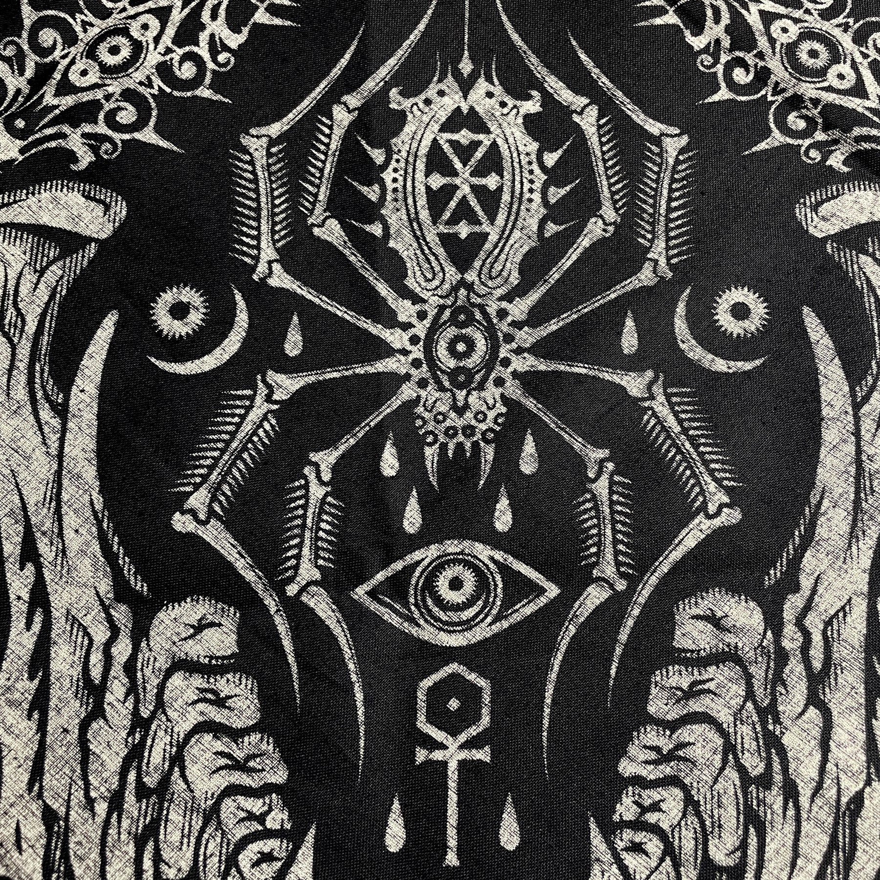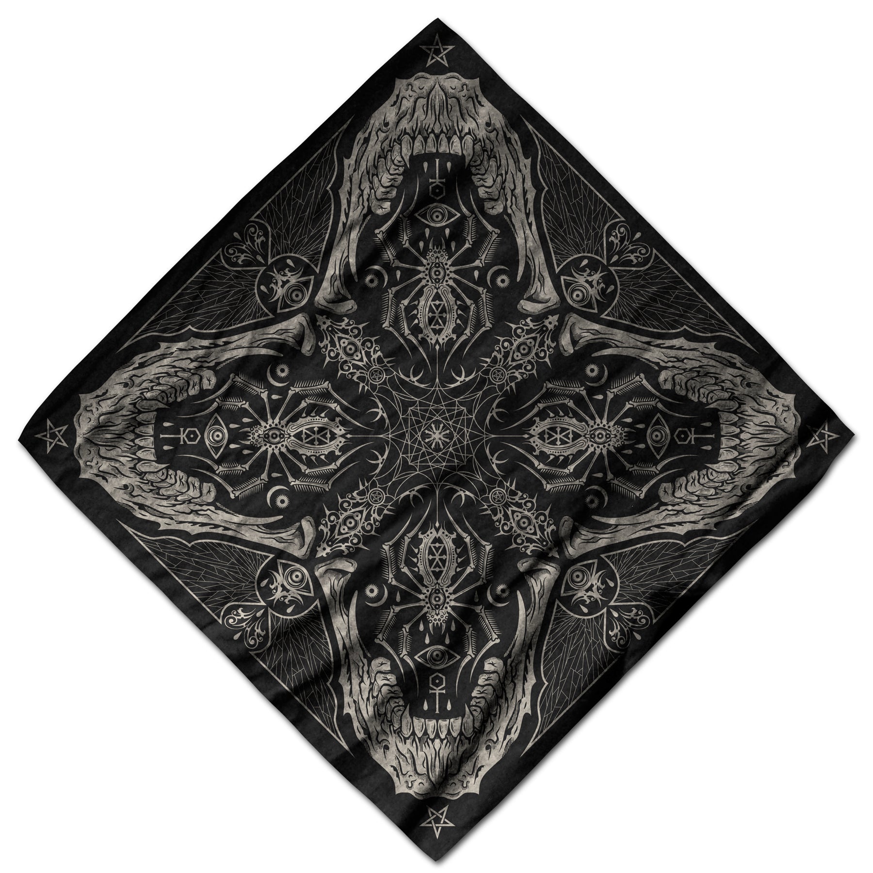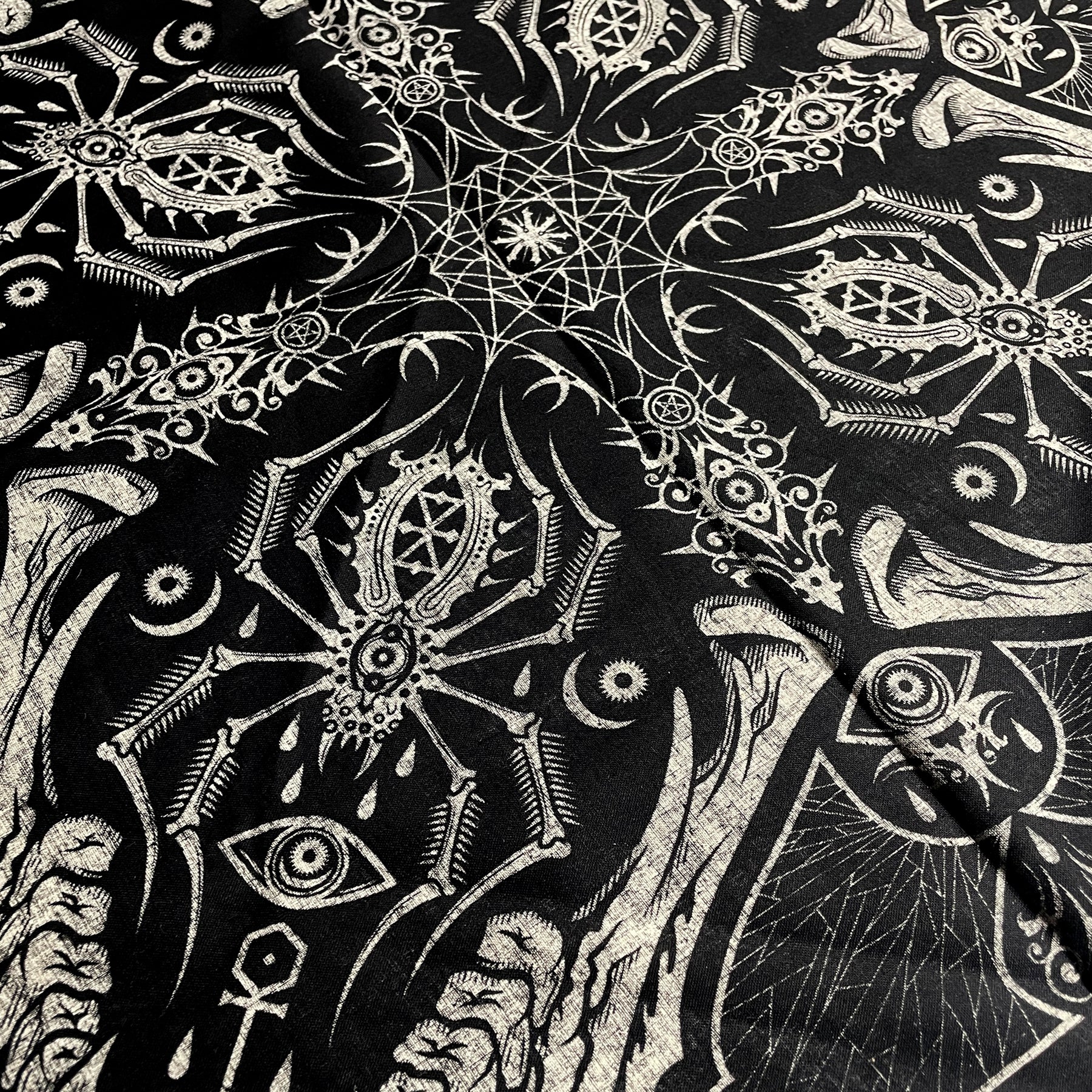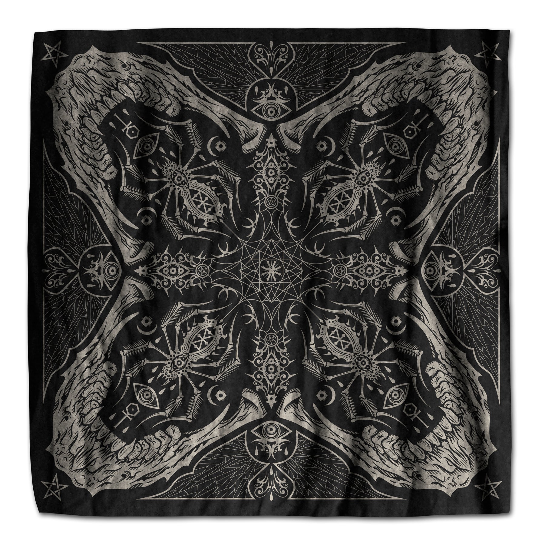 21" x 21" 100% Cotton Black Bandana / Altar Cloth with Antiqued Off-White Discharge Ink Graphic