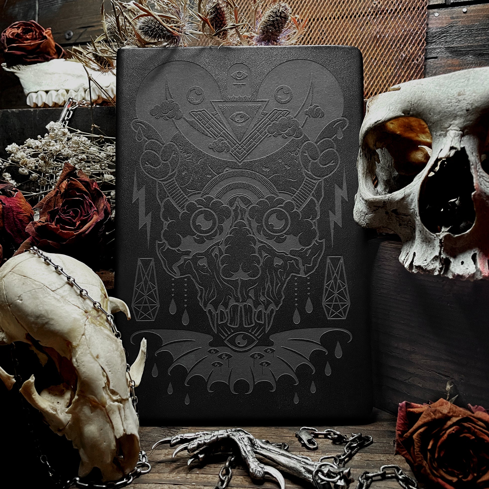 5.5 x 8.3" Faux Leather Notebook with Etched Graphic Cover. Perfect for taking down notes / insights pertaining to Oracle Deck usage or your own arcane musings!