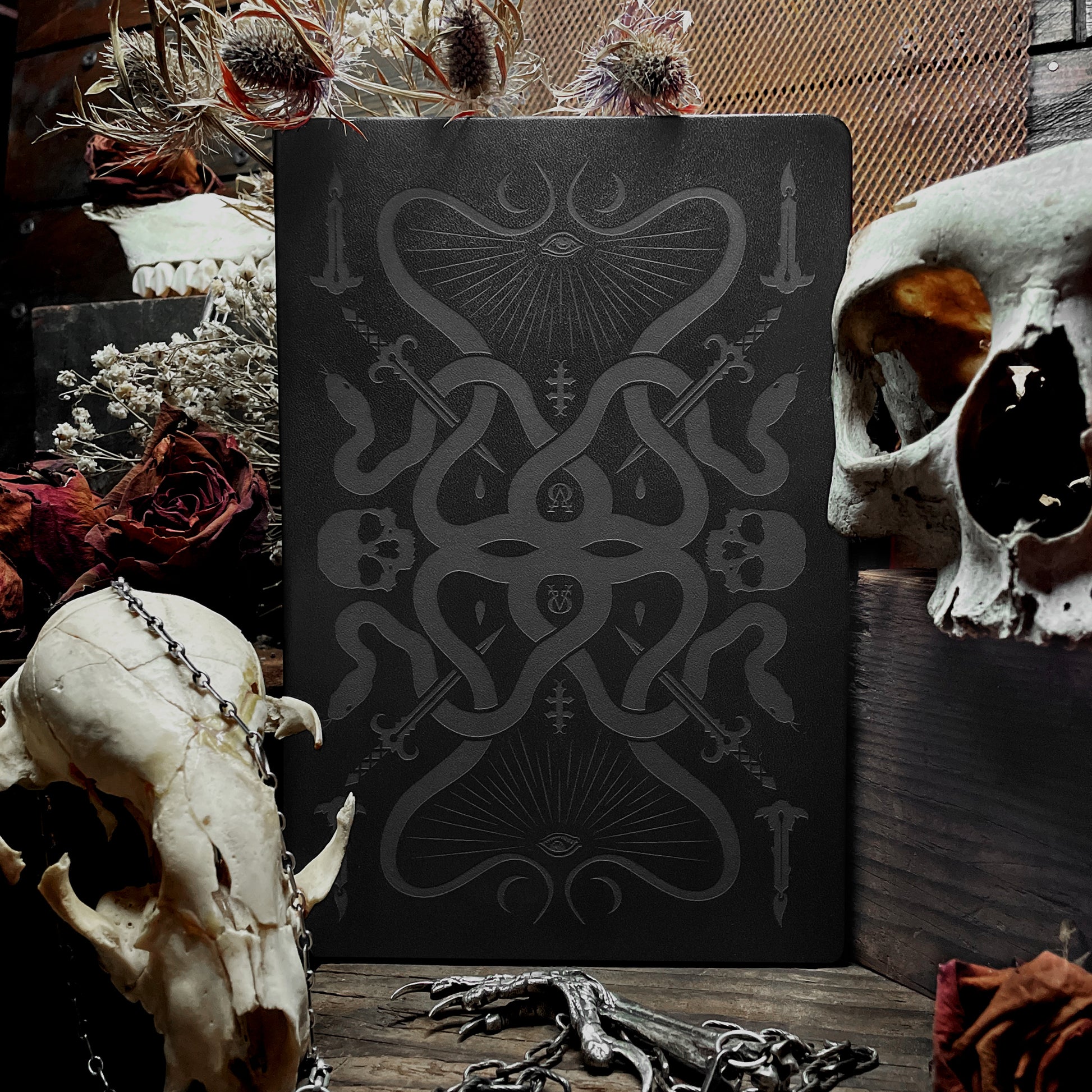 5.5 x 8.3" Faux Leather Notebook with Etched Graphic Cover. Perfect for taking down notes / insights pertaining to Oracle Deck usage or your own arcane musings!